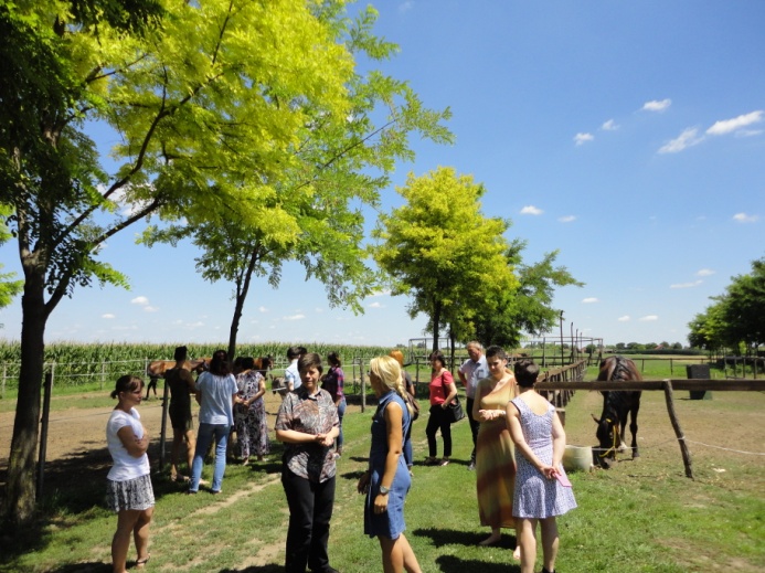 Tanulmányutunk során megismertük a Délalföldi Lovasudvar dolgozóit és gyógypedagógiai lovasterapeutáit, Kissné Hatvani Erikát és Kiss Rékát, illetve áldásos tevékenységüket.